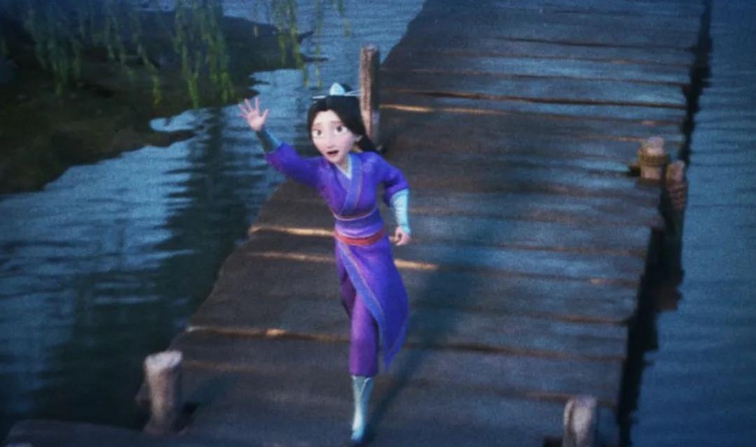 在电影中,哪吒的母亲殷夫人面对即将离去的哪吒,一次次张开双手,即便哪吒有点羞怯,也毫不犹豫地展示她的爱。
